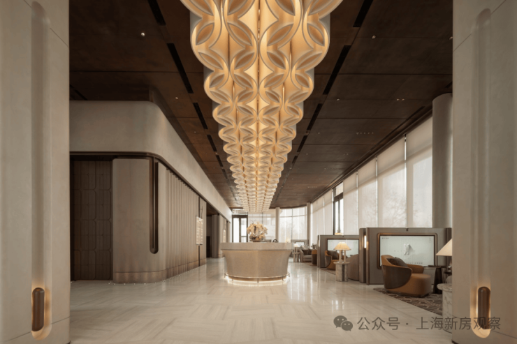 从示范区的打造上来看,保利打造了度假感氛围!采用了国际度假酒店的打造手法,从门头、具有海蓝色的水景、海岛感的花园植物,丰富艺术品的植入,以及非常亮眼的上海首个浮雕水景艺术卡座,营造轻松、惬意的氛围,像这样的松弛场景在项目中数不胜数,给到客户强烈的度假感和松弛感。