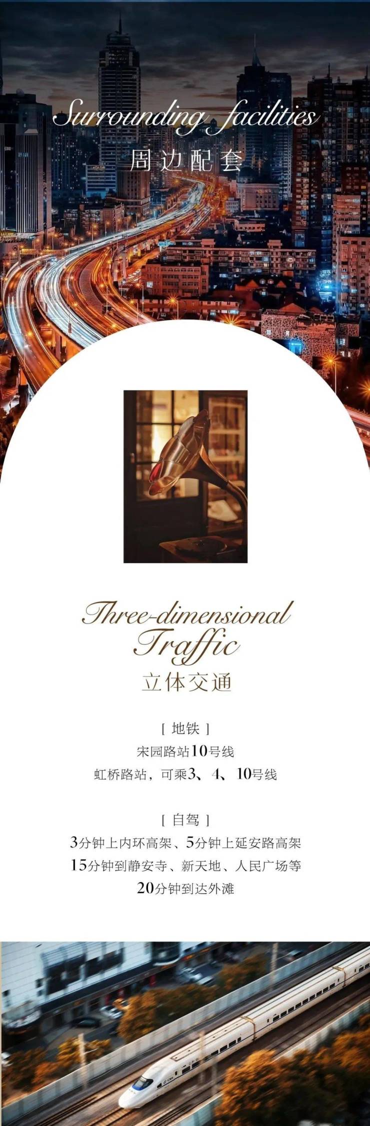 交通配套:临近宋园路站(10 号线)、虹桥路站(3、4、10 号线),4 轨交汇