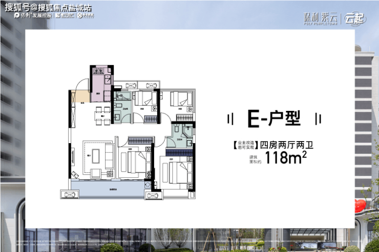 紫云·云起由保利、新华、华安联合开发。主力户型88-118m²,主打刚需。