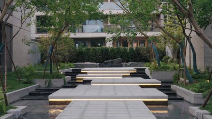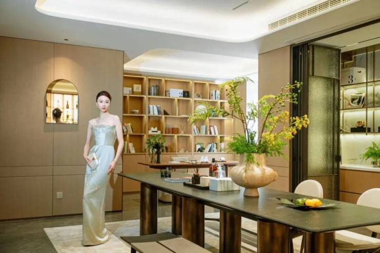 以“西湖风景”为蓝本,打造“观水迎宾、山水雅庭、清音叠瀑、寻溪山径、庭院深深”五重归家礼序,和鸣自然山水间,创造隐逸贵雅的生活方式。
