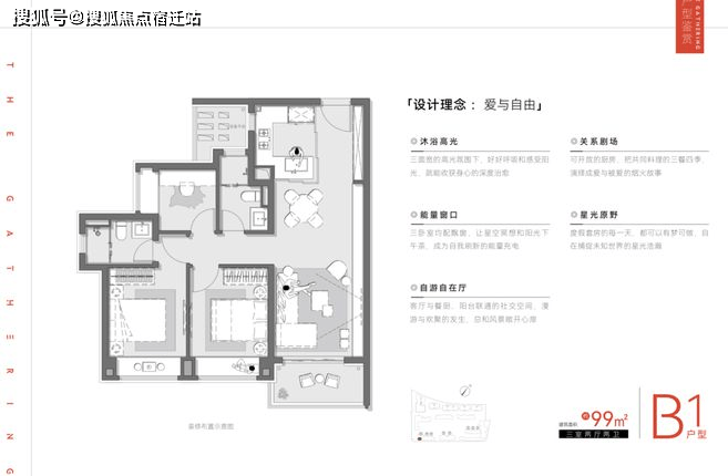 99 square meters, three bedrooms, two living rooms, and two bathrooms (246 sets)