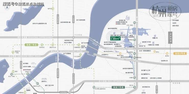 在交通配套方面,钱塘湖映里周边有地铁7号线启成路站和地铁8号线。地铁7号线已通车,途径五个站点到达萧山机场、约半个小时可到达奥体、钱江新城、吴山广场等重要行政及商业区域。地铁8号线也已通车,无缝衔接核心区与下沙开发区,换乘1号线可通往杭州东站、武林商圈、西湖、滨江等重要区域。