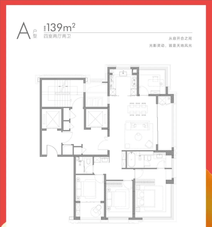 建面约139㎡四房户型: