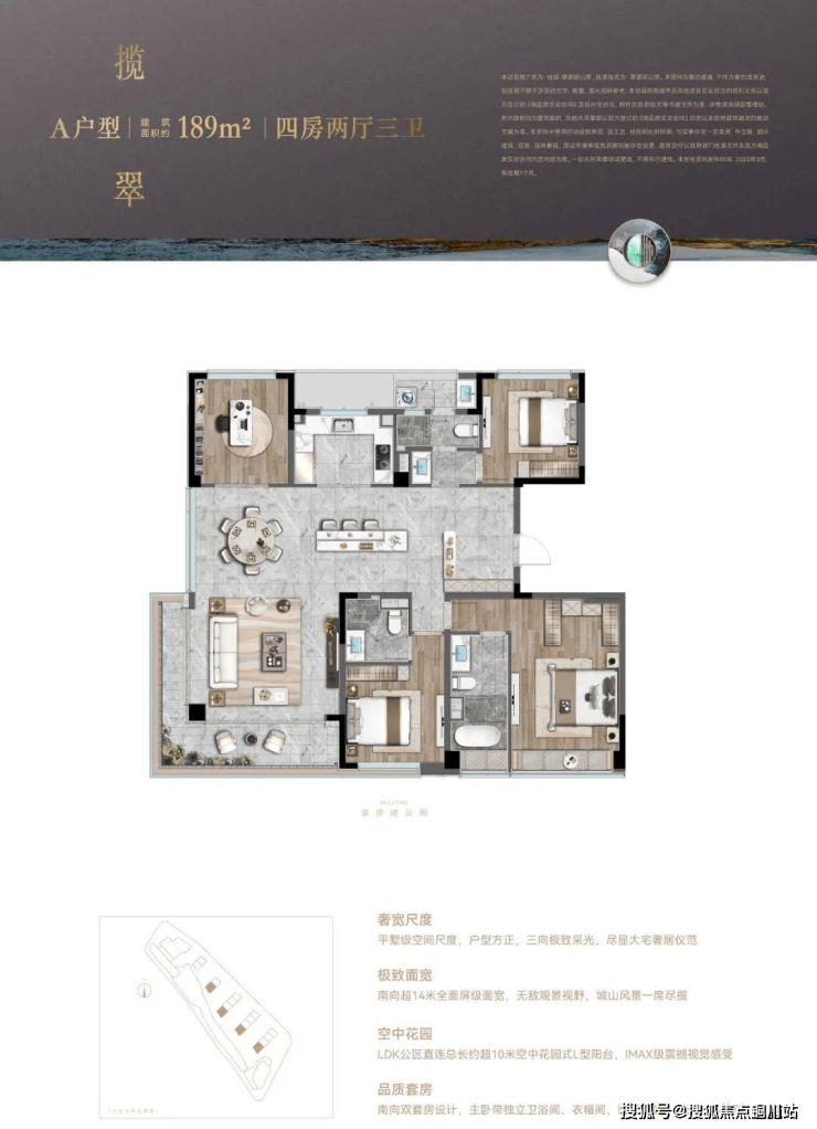 户型面积:建面约139㎡、建面约189㎡都心地标大宅