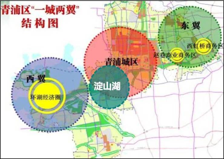 青浦区“一城两翼”规划,淀山湖位于淀山湖新城与环湖经济圈结合处;