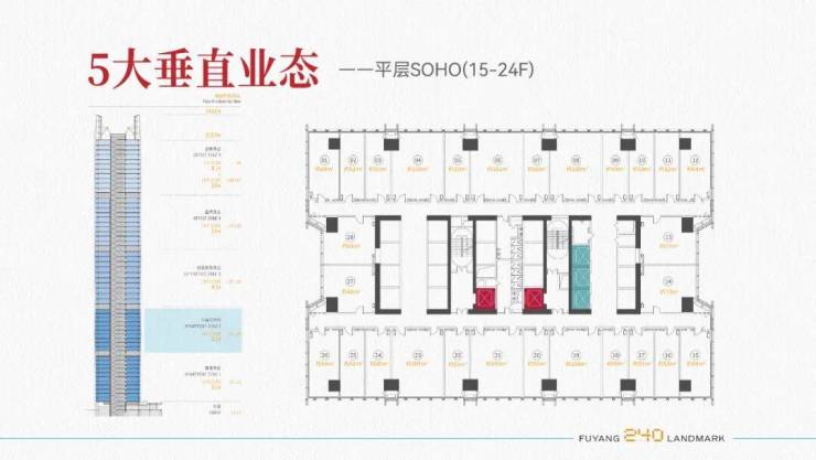 21+2部电梯配置(2部货梯)最快梯速4m/s ,无阻垂直通行