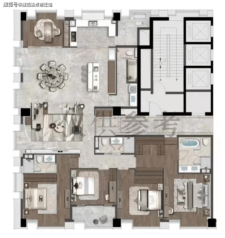 中豪桃源时代,约330-340方大平层奢阔空间,全屋智能家具配置;打造4+1户型和4+1+1的真改善居住空间;三面采光、南北通透的边套格局;四开间朝南设计,每一个卧室全朝南,使得居住舒适度达到最佳状态。