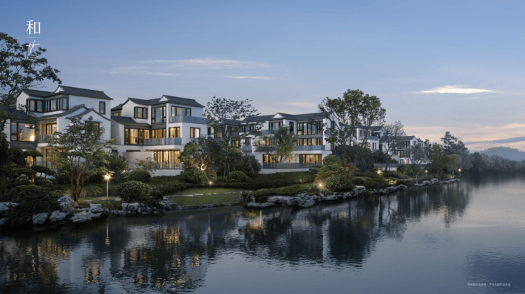 大丽和和中心中式美学院落的立面造型是在徽派基础上的当代表达,将古典建筑中粉墙黛瓦与自然景观之间形成色彩搭配与对比,结合现代风格建筑,打造形神兼备、有时代气息的新中式建筑。