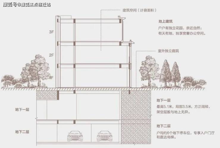 【层 高】地上约3.8-4m,地下至高约5.1m