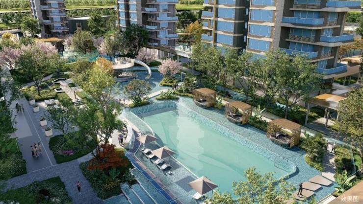 园林覆盖4500m²水系景观、其中林下双戏水池占近千方,遮阳棚、躺椅、水吧等细节一应俱全,满足日常休闲需求。