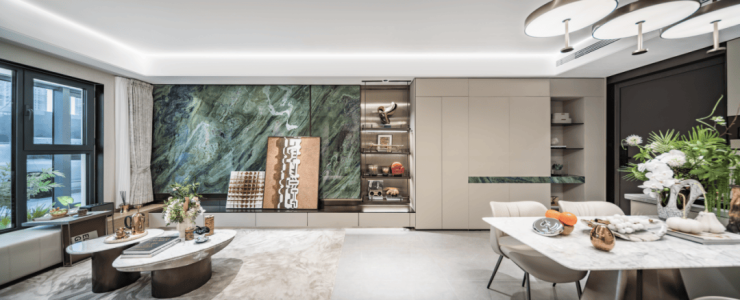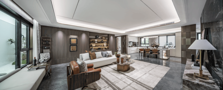 项目建面约130㎡精装样板间,约5.8米宽厅,实现了平墅级的空间体验,玄关、设备平台、观景飘窗等人性化设计,进一步延伸了生活空间,赋予居住更多可能。
