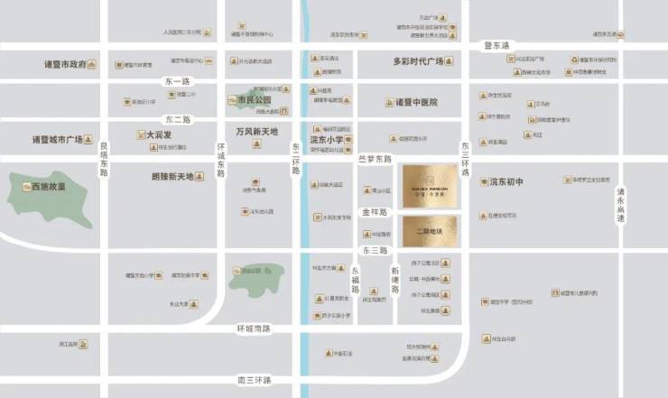 【交通资源】毗邻东三环路,与东二环路、环城东路以及苎萝东路、暨东路、环城南路构成“三纵三横”交通路网,畅达诸暨全城。