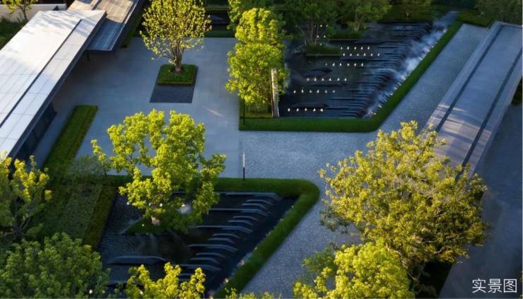 从展示区一路走到售楼处,大面积入口水景观和组团景观,均实景交付。