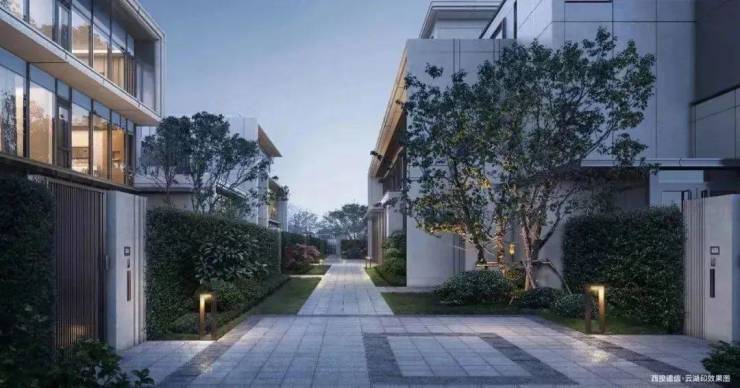 云湖印建筑立面采用大面积玻璃幕墙辅以灰系铝板装饰,呈现都市现代极简气质,满足高素质人群对人文艺术生活的追求,同时,作为之江难得的平墅产品,约1.8低容积率,营造真正的舒适居住秘境。