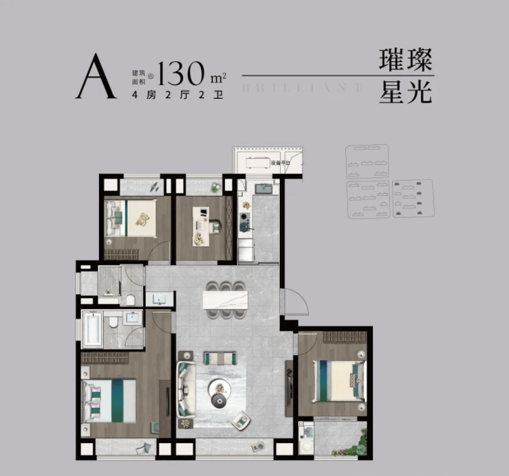 【宽奢四室】南北通透4房,家人独立房间,启幕品质人居