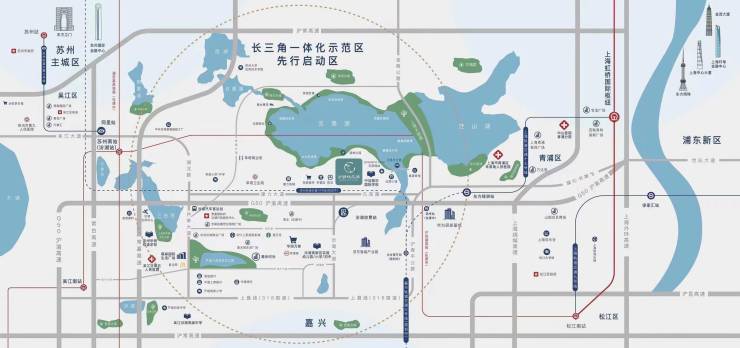 项目东北侧邻元荡湖生态公园,东南侧邻「水乡客厅」,华为、中车、英诺赛科等尖端企业环布四周,稳坐长三角C位,生态与发展兼备。