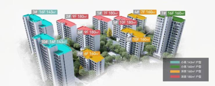 洋房:160m²(4-2-3)、180㎡(4-2-3)