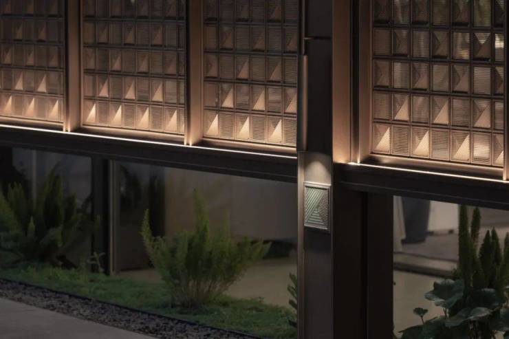 行至院落,忽闻清音袅袅,循声而入,绿意浓浓,精致窗门下感受幽雅的渗透空间。运用夹景的手法,左右两侧景墙加以屏障,使景观空间延伸至景观焦点,一树、一石、一光,叶疏影秀,小中见大。