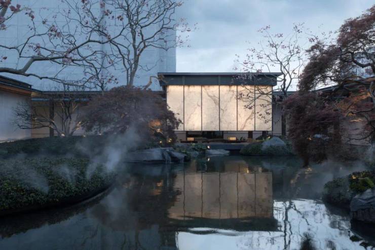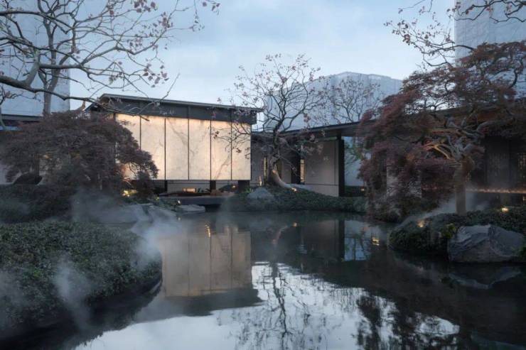基于场地周界三面均为老旧住宅区,为了延续城市构想,在老旧城市界面中提升产品形象,景观希望用设计保留古典园林中的东方韵味,取法留园师法艺圃,再现东方门庭风度,力求打造一处藏于城区中可见山水、可见四时的东方藏品大宅。