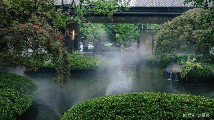 从之前公布的效果图来看,项目的门头采用了古铜铝板+石材打造,融入了白墙灰瓦、劲松流水等江南园林景观元素。