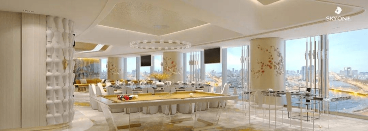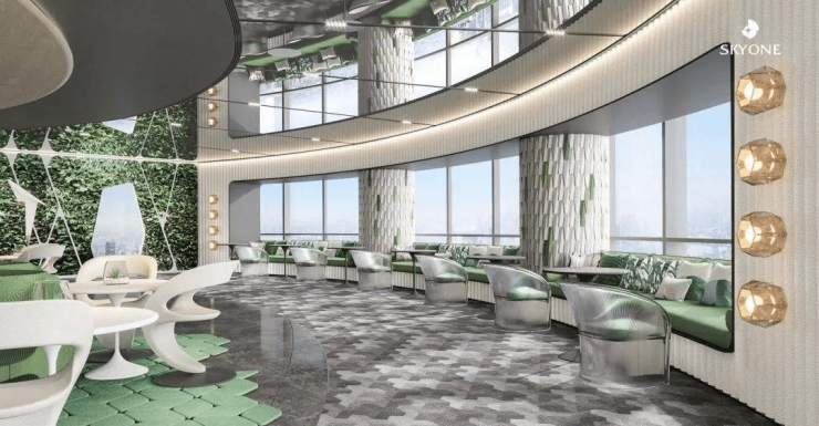 湾区塔尖圈层私享CLUB、塔尖名仕主题高定音乐艺术餐厅,云端书院、休闲健身、高端精品商业等,约258米垂直高度,天际行宫,自成都市。