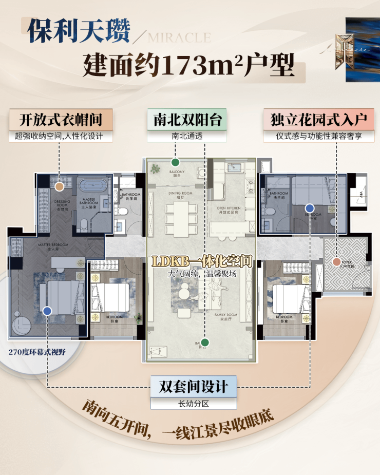 今天我们以建面约173㎡为例,深度解读保利天瓒所带来的空间革命。