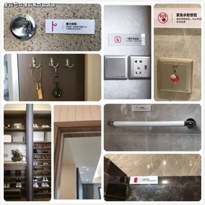 无论是入户的重物挂钩、钥匙挂钩、一键开关、一体式玄关,还是全屋多处设置的紧急求助按钮、走道与老人房的感应小夜灯、厨卫门槛石的无级差放坡,或者是卫生间及鞋柜旁的扶手、柜子及房门的静音条……这些高标精装中的细节品质,让装修品质一览无遗。