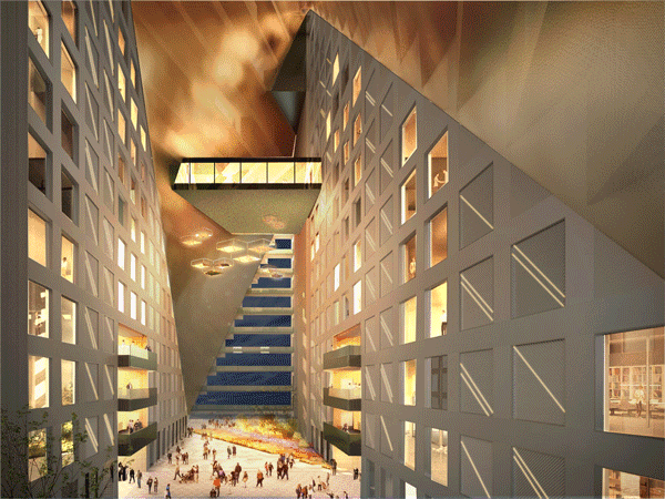 “光柱”的10F、21F还将作为公共空间开放,住户可以在这里阅读、休憩。更有厨房、餐吧、洗衣房、台球厅等配置来丰富生活内容。