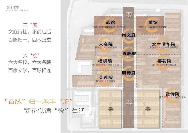 百脉悦府,延续东方尊崇威严,一条中央景观轴纵贯南北,景致东西对称,谓之和谐;层层递进、九横五纵的建筑布局,谓之九五至尊,于自然语境里,映衬着世家望族威仪。