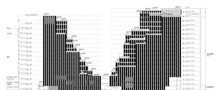 这两座塔楼亦是整个项目制高点,瑰丽酒店规划了17层,K11 ATELIER规划了20层,最高建筑高度92.075米。