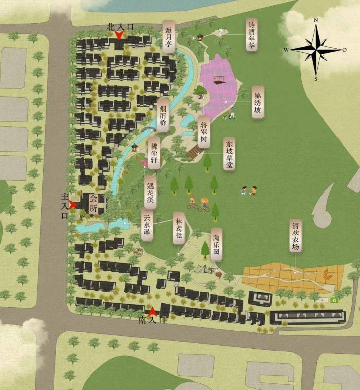 栖心境:是得闲与亲朋欢聚的好去处,各景点上有较多功能互动区——诗酒年华/陶乐园/清欢农场