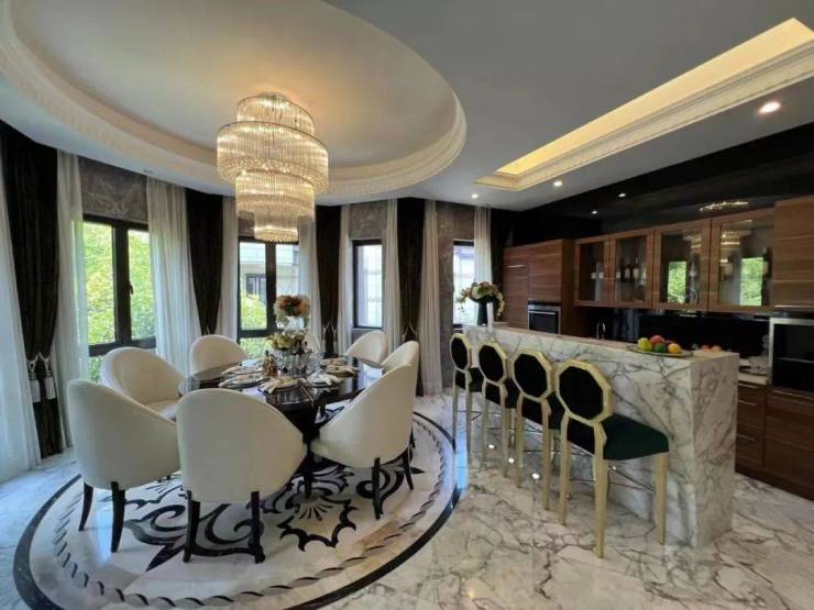外立面采用石材干挂设计,延续了经典的 artdeco风格 ,线条丰富细腻,使整栋别墅古朴优雅,方正的轮廓与简洁的线条赋予别墅明快的现代活力。采用独特的纵向排布和局部下挖设计,让每一户都能享受到独栋别墅的待遇;立体S型坡道设计,在做到人车分流的同时,更加注重别墅的私密性以及景观性。