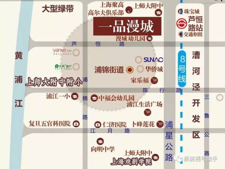 交通方面:项目紧邻地铁8号线芦恒路站,根据《上海市轨道交通近期建设规划(2017-2025)环境影响评价第二次公示》显示从2017-2025年间,19号线和24号线会途经此地,在三条轨交之间,还有一条规划中的机场联络线。无论是自驾或是乘地铁抵达上海任何城市重要节点都非常迅捷。