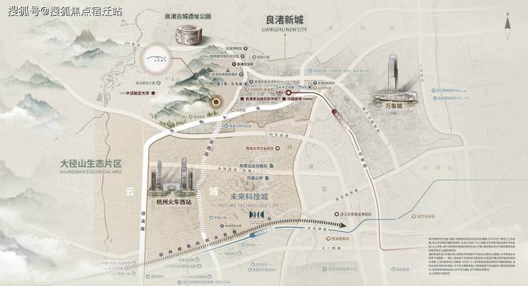 2、地铁2号线+古墩路+运溪路立体交通体系,良渚开启“地铁+高架时代。