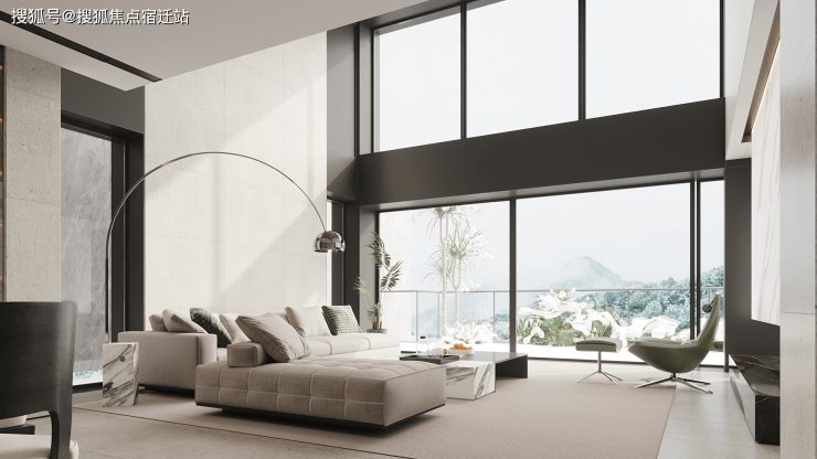 双首层入户一层,作为会客接待的私属领域,可归置约30人的客厅聚会,挑高私宴厅配置专业厨房,同时相连着阳光花园、泳池;入户二层,则构成家庭共鸣的流连忘返之所,客厅三面270°环绕落地玻璃窗延湖面延展,凭窗望湖,看山色自朝至暮缓缓移动,林间流莺婉转,阳光铺在水面上,泛着点点金光,水纹远远地向远处延伸,随之人们的心胸也豁然开朗.