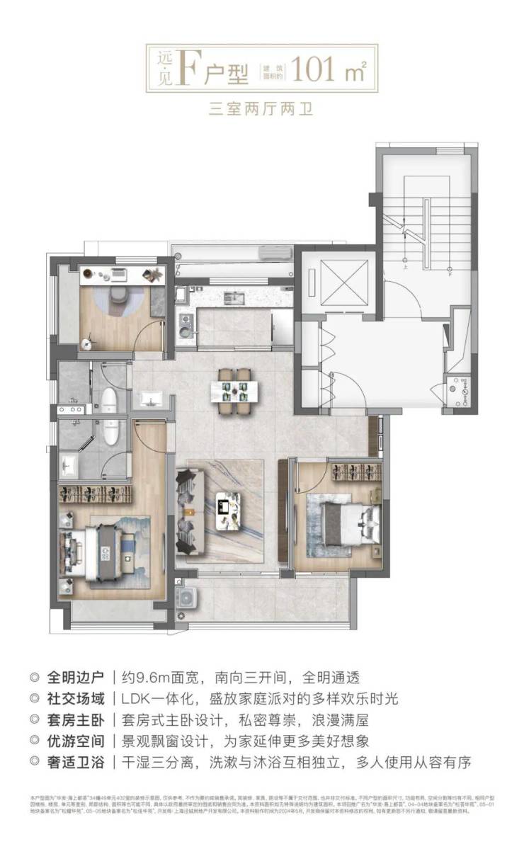 建面约101㎡的F户型都是市面上备受认可的飞机经典款户型。