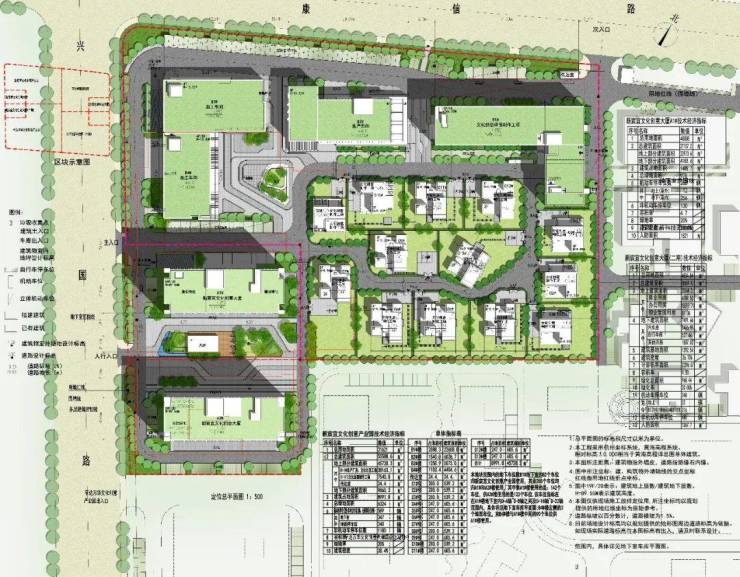 工业园区总建筑面积约50000方,由4栋大平层和13栋独栋组成(大平层B1-B4)。
