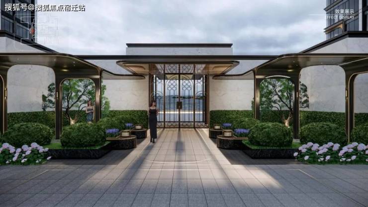 比如“原生围合社区”、风雨连廊,从高奢酒店中获得灵感的酒店式落客区、度假风园林,以及千万级住宅中都不多见的下沉式会所!
