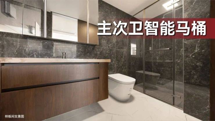 不仅有东芝中央空调、威能地暖、新风三件套配齐,甚至主卫、次卫均配双智能马桶,还有定制橱柜,整合各种收纳空间……还大力砸钱采用华为智能家居系统等等,个个都是大牌,让购房人狠狠心动。