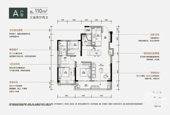 在户型的打造上,项目也是精心雕琢,旨在为业主们提供既舒适又便捷的居住体验。约110平方米的户型通过动静分区的设计理念确保了生活的有序,三个朝南的开间和阳台设计保证了优越的采光,每缕阳光都能照亮家中每个角落。同时,两个卫生间的设置有效解决了家庭成员早间排队的问题。