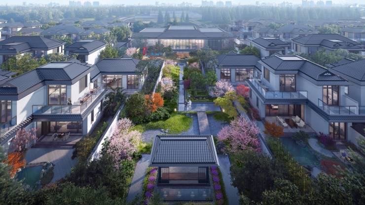 项目占地面积约9.4万㎡,总建筑面积约7.5万㎡。容积率约0.41,整体规划282户独栋合院,地上2层,地下1层。本案北至名叫“寸心泾”的内部河流,北侧紧贴上海协和高尔夫俱乐部球场,西接连塘河,通过内部园区道路与嘉行公路相连接。整个小区三面环水,取聚水为财之意,寓意能藏、能聚、能蓄之地。