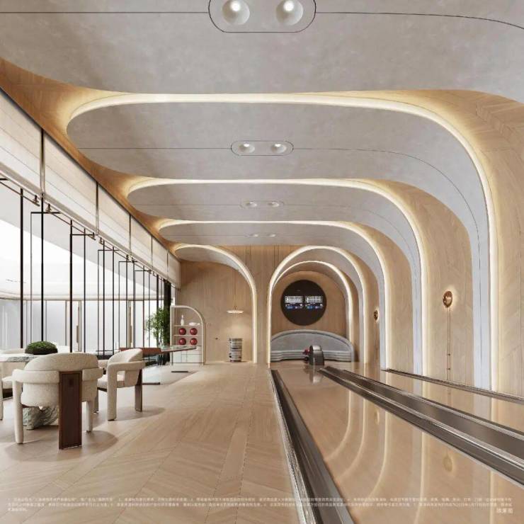 保龄球&沙壶馆:这是在市场很多豪宅都不一定有的罕见功能,包含2条标准尺寸的保龄球球道,还贴心配置鞋柜收纳、换鞋凳以及除臭仪,细节满满!