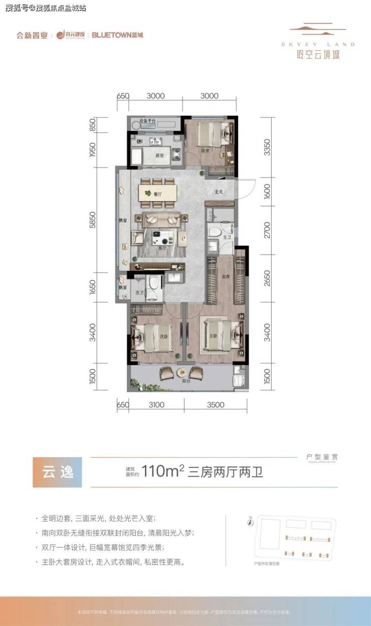 聆空云境城总建面积约154779㎡,项目规划UP级高层住宅/星级酒店/高端办公/商业街区,可售房源328套,户型面积约97-102-110㎡活力空间,均价20000元/㎡,总价180万起,产权性质70年精装交付,交付时间:2025-12-31!