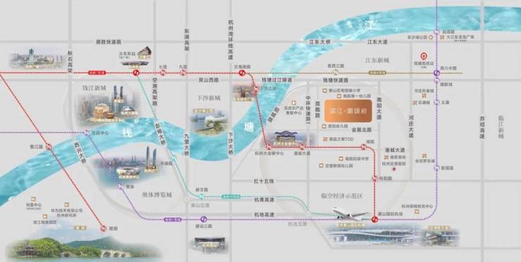 项目南北钱塘快速路过江隧道、红十五线,可快速连接萧山、下沙、江河汇、杭州东站等主城区域,更有中环快速路正在建设未来通达全城