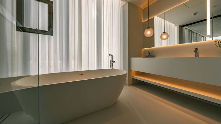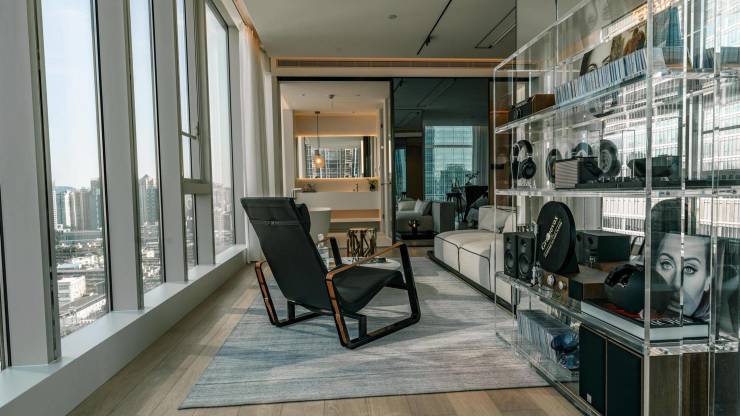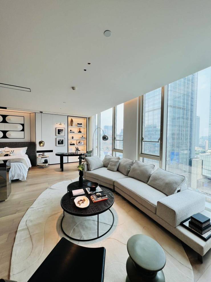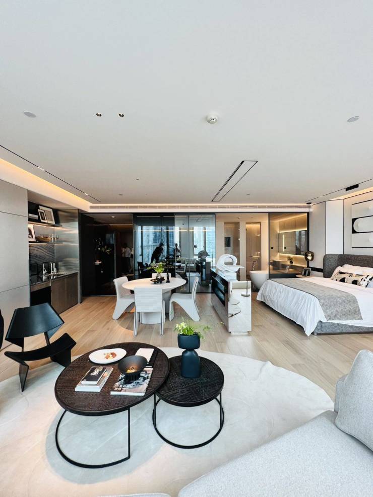 卖点七:盈嘉配备奢华精装,是顶级轻奢服务式公寓。中央空调、新风、地暖全带,洁具杜拉维特,五金汉斯格雅等,盈嘉专为高管、海归等金字塔人群提供至尊服务。