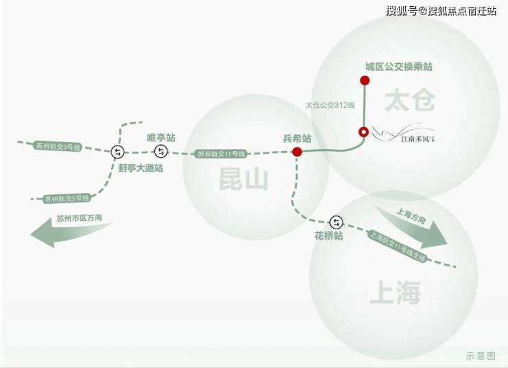 项目邻靠前进路、胜泾路、烟沪线(204国道),便捷接入两高(京沪/沈海高速),同频太仓“5+1”轨道交通网络(建设中),公交路线312路自江南禾风站,向西链接苏州轨交11号线,向东至科教新城客运站换乘60路,102路,112路,128路,以多维立体交通便捷出行长三角。(资料来源于太仓发布官微)