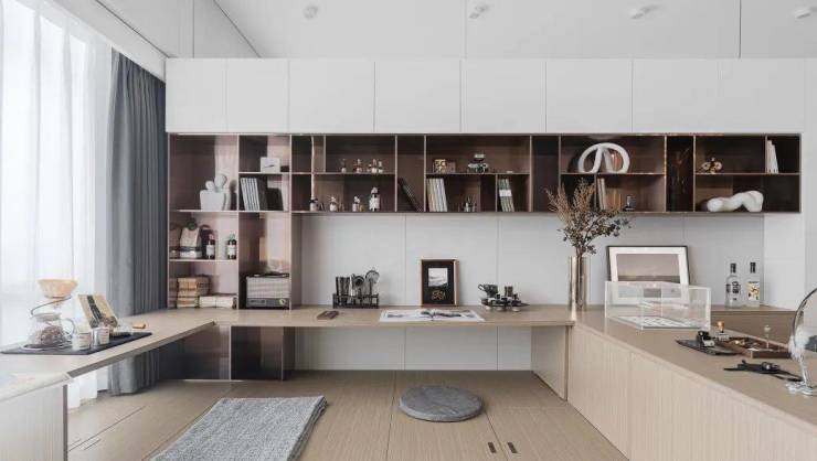 从时光撷取细碎光亮,咀嚼趋势青年的情绪与思想,在不同材质之间展开丰富对话。专为年轻旅行家著述的艺术空间内,一楼以工作区为主功能呈现。在乳白与原木色为基调的自然场域内,借雅黑、亮铜、浅灰与之呼应。