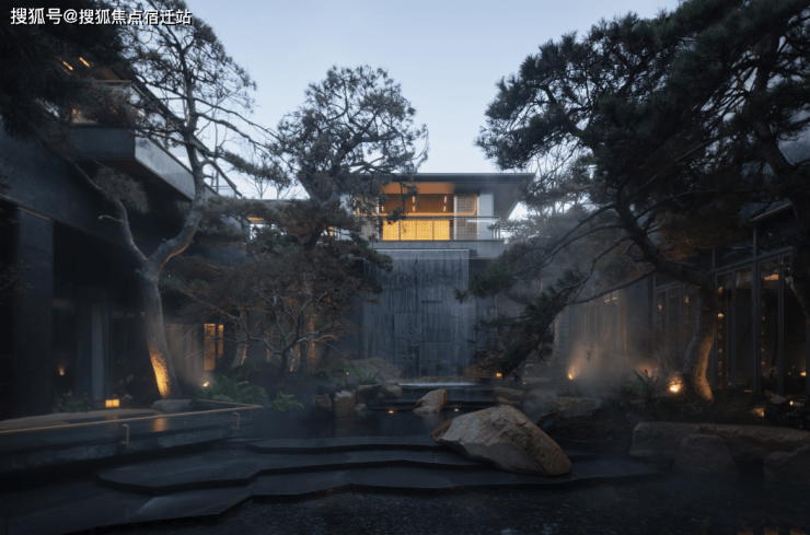 以传统园林为造园灵感,迎龙观月将自然与建筑融为一体。效仿寄畅园从惠山引来泉水营造“八音涧”的创举,还原出【松涛飞瀑】的山水意境。