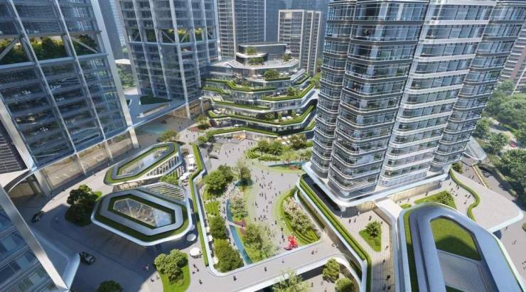 EIC给人的感觉就是一种国际范儿,它不仅体现在产品设计、服务理念上,更体现在整个大盘综合体的配套与气质,一共7幢楼,4幢大平层,2幢写字楼,1幢Mall+总部办公,围合成一个百米楼间距的超大园区,将引入10家中概股、20家上市公司,30家新金融公司,40家互联网头部企业,超5000位高层次人才。