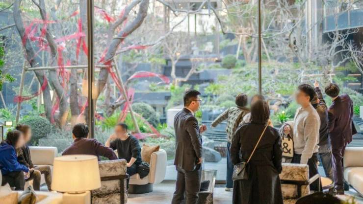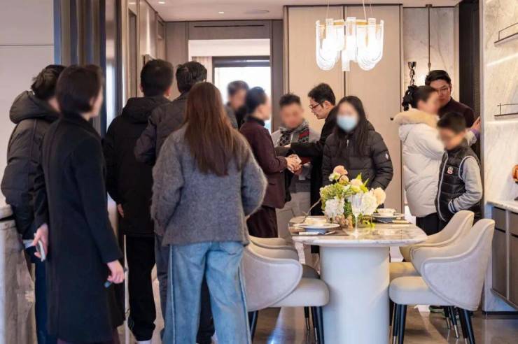 示范区现场络绎不绝,售楼处沙盘前围满人,样板间需要排队参观...